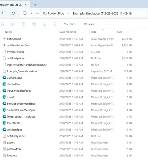 Figure 4: Contents of a Run Folder for Inspire OptiStruct Solver