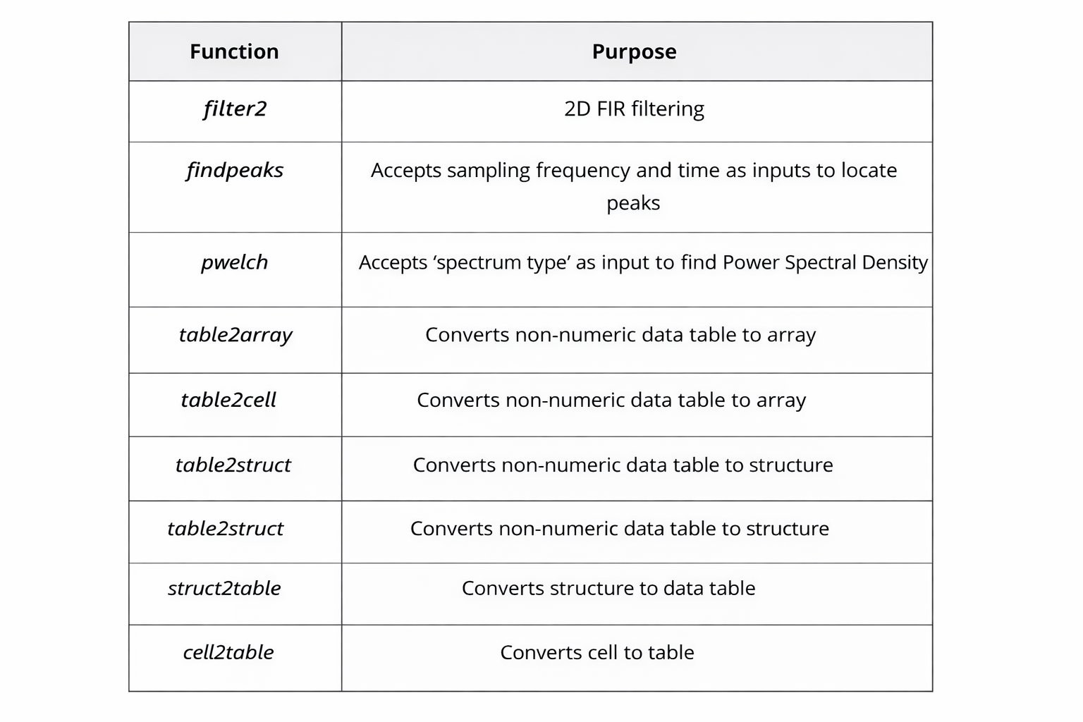 First, I wanted to start with some of the simpler changes that can assist a user to increase their productivity within Compose, which is the OML scripting and data visualization software within the Altair suite. There are several new and improved functions for signal processing and handling tables of data, which are described in Table 1 below.