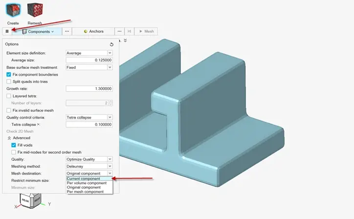 Method 2: Specifying Component during 3D Meshing