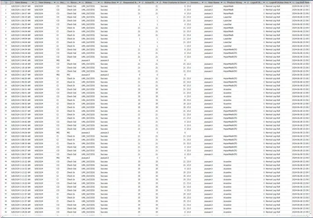 Lastly, you can access the link to download the related model/template file(s) for use in Monarch Desktop and Monarch Server in the final two columns. For this example, we followed the “Desktop” link for the “Altair License Mgmt System” and we added the provided model (All Results.dmod) to an Altair Data Prep Studio workspace. The results of uploading a single test log file are shown below in Figure 2.