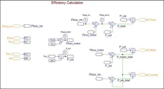 Fig 3. Automatically created efficiency calculation subcircuit schematic in Altair PSIM.