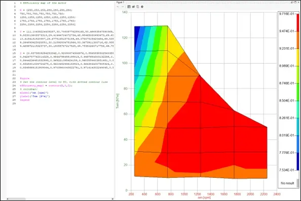 Fig 5. Output of automatically generated OML to produce Motor Efficiency Map in Altair Compose.