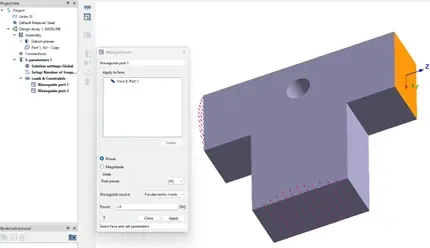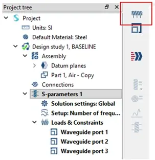Next, we will set the waveguide port conditions. Click on the S-Parameters from your Project Tree and choose the Waveguide Port symbol from the side menu.